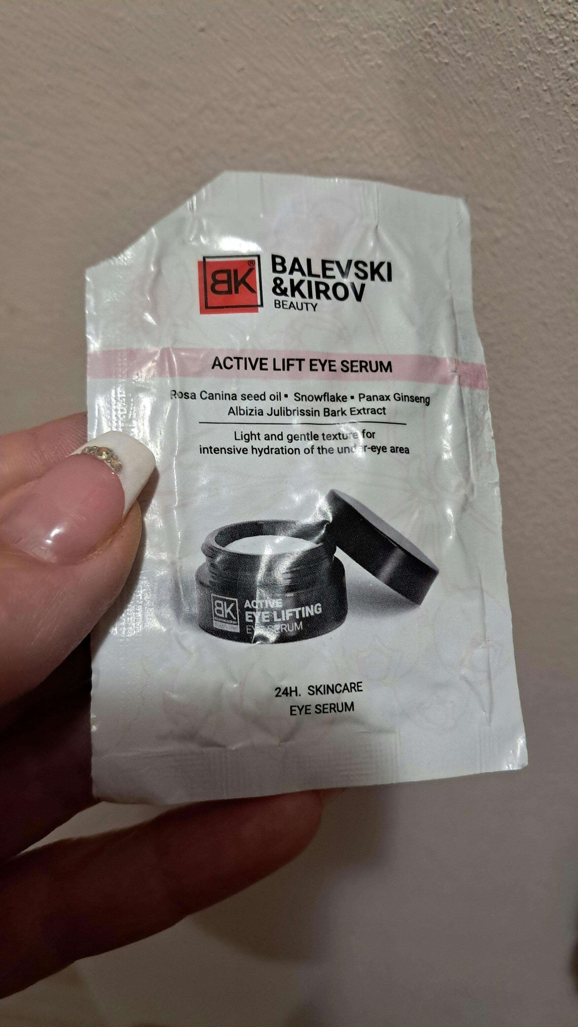 Нашият Active Lift Eye Serum е специално създаден, за да осигури интензивна грижа за кожата около очите. Формулата му комбинира мощни активни съставки като шипково масло, хайвер от охлюви, екстракт от персийско копринено дърво и растителен колаген, които видимо изглаждат фините линии, стягат кожата и възстановяват нейната еластичност.