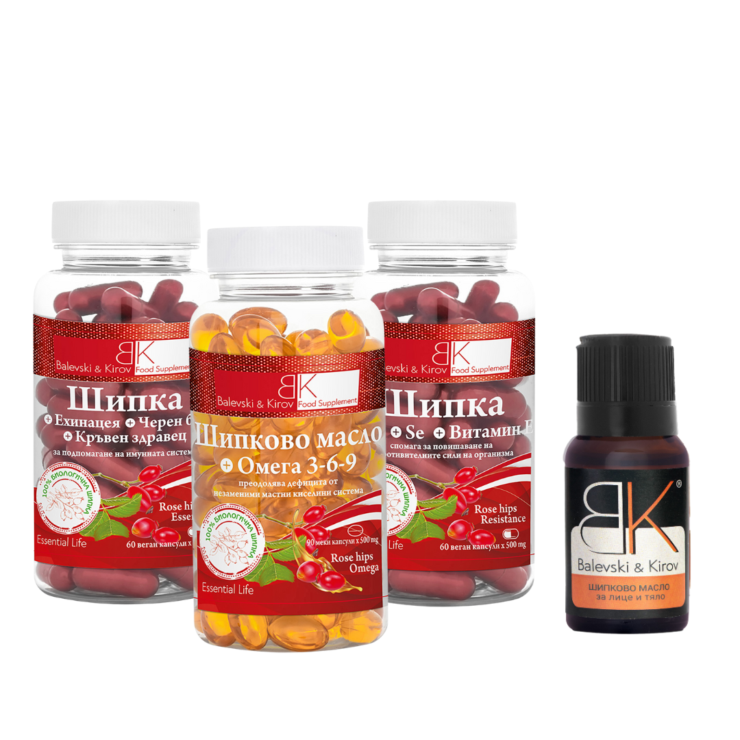 1)Rose hips Essentials - Шипка, Ехинацея, Черен бъз и Кръвен здравец