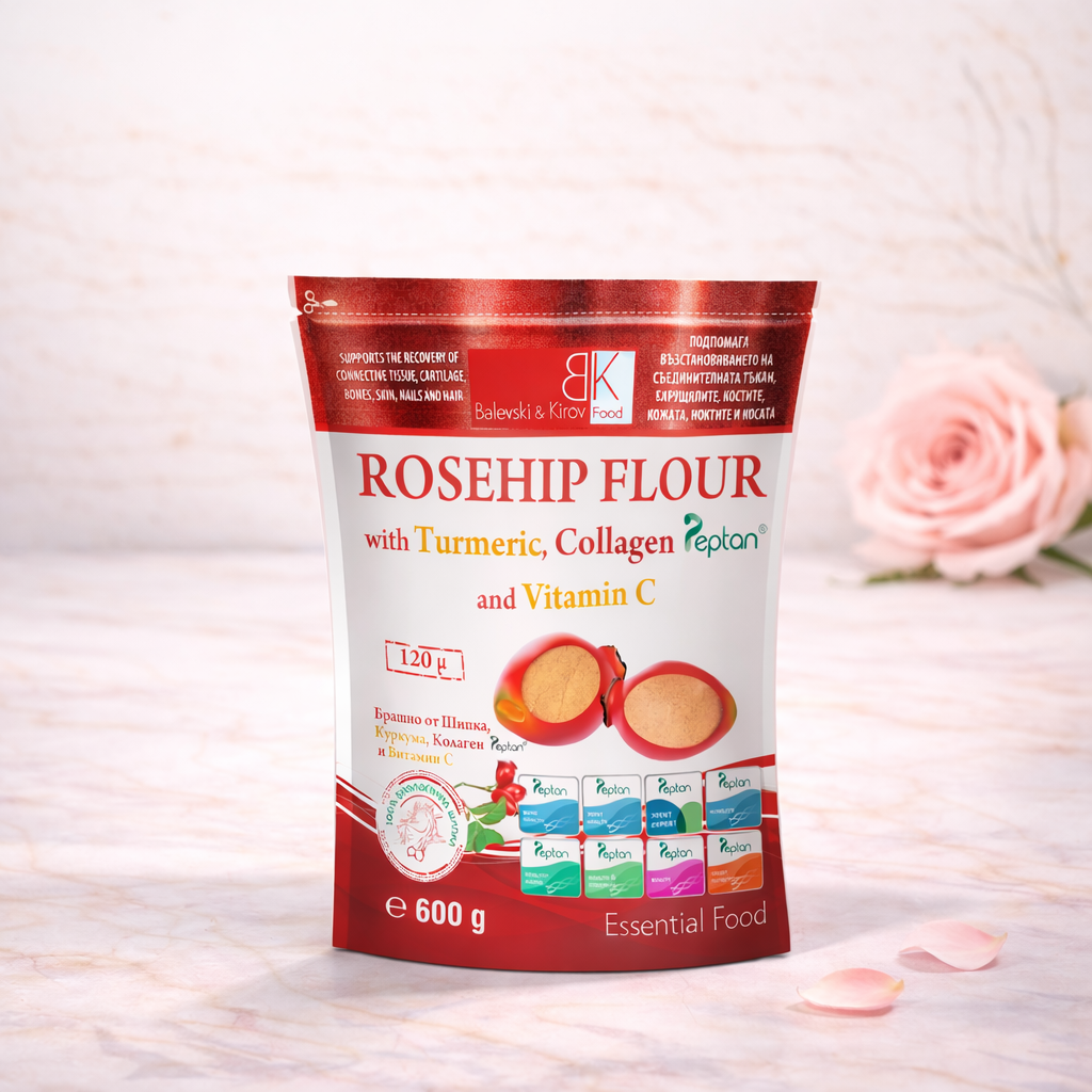 Брашното от шипка с колаген Peptan е специално създадено, за да подпомага здравето на кожата и ставите ви. Шипката е богата на витамин C и антиоксиданти, които помагат за поддържане на здравата кожа и същевременно защитават от свободните радикали. Колагенът Peptan е доказано ефективен в подобряването на еластичността на кожата и поддържането на ставите в добро състояние. С редовната консумация на нашия продукт, можете да се радвате на гладка кожа и здрави стави, които ви позволяват да се движите свободно и без болка.