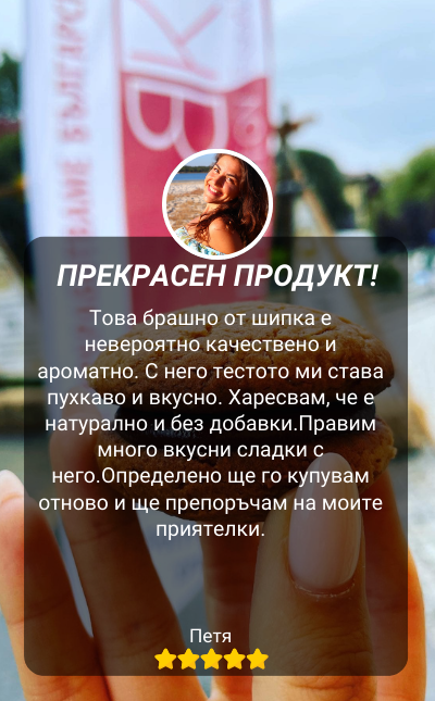 Благодаря ви за истинските и качествени продукти! Преди месец за пръв път си купих Студено пресовано масло от Шипка с Безсмъртниче за околоочен контур и Rose hips Essentials - Шипка, Ехинацея, Черен бъз и Кръвен здравец. Мога да потвърдя, че и двата продукта оказват влияние! Претърпях операция, след която всички, минали през същата интервенция казваха, че на първия месец се разболяват, заради намален имунитет... Бях сигурна, че и мен ще ме хване минимум някоя настинка. Но не! Чувствам се отлично и категорично имам повече енергия от обикновено. Благодаря, че не правите компромис и държите на качеството. Ще поръчам и други продукти!
