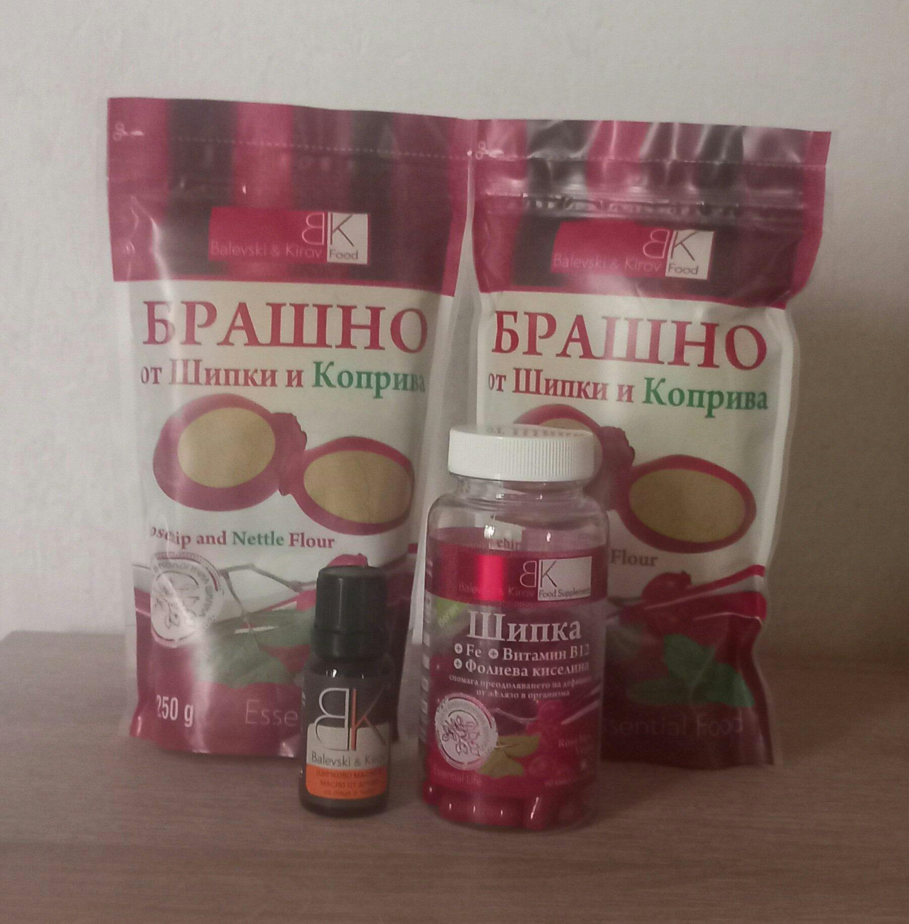 За да подкрепите борбата с косопада вътрешно, трябва да приемате хранителната добавка: Шипка, Желязо,Фолиева киселина и B12 два пъти дневно. Освен това, консумирайте 2 супени лъжици брашното с коприва в кисело мялко, мюсли, шейк, фреш или др.