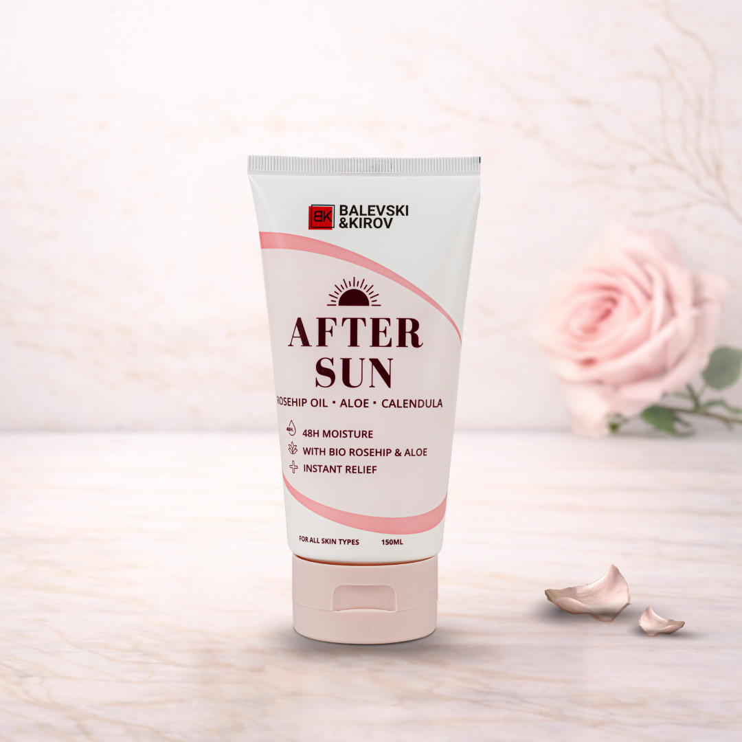 Нашият After Sun Лосион с био масло от шипка, алое вера и невен е създаден, за да ви предложи нежна, но ефективна грижа след излагане на слънце. Формулата комбинира три от най-ценните натурални съставки, които успокояват, хидратират и възстановяват кожата, като я поддържат еластична, гладка и защитена.