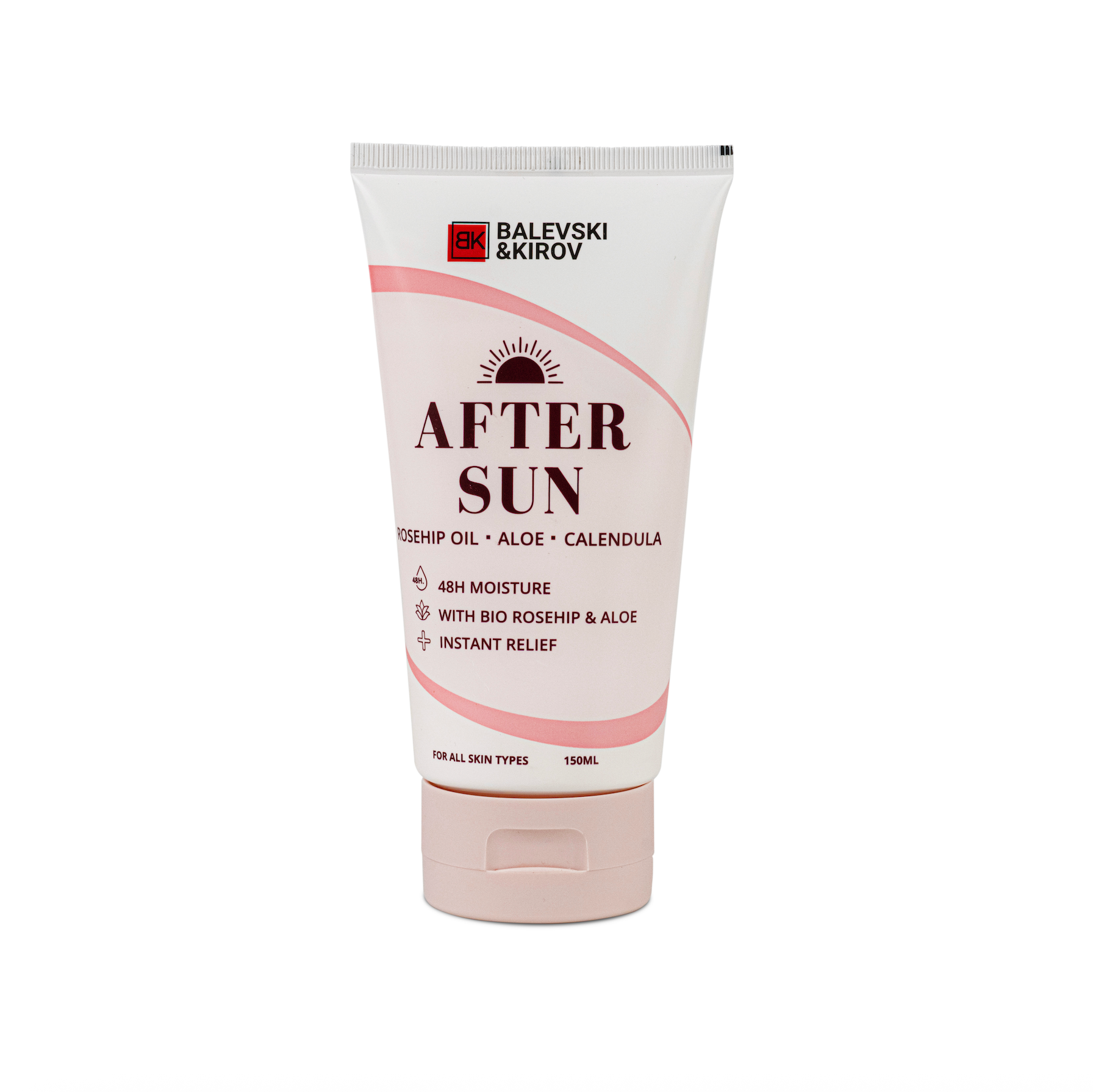 Представяме ви нашия After Sun Lotion – специално създаден, за да възстанови, хидратира и успокои кожата след излагане на слънце. Формулиран с био масло от шипка, органично алое вера и екстракт от невен, този лосион осигурява 48-часова хидратация и моментално облекчение на зачервяванията, сухотата и чувството на опъване.