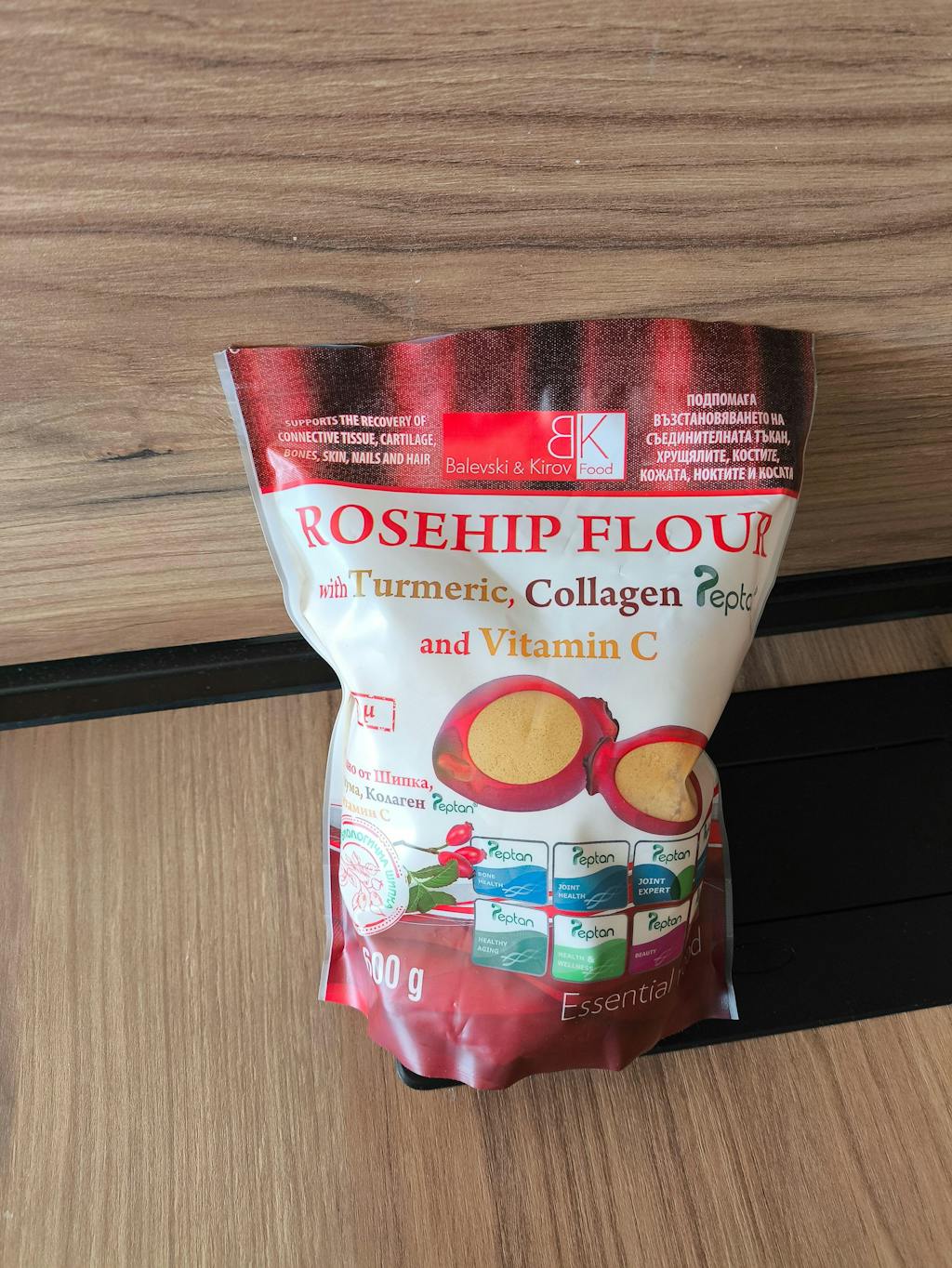 Брашното от шипка с колаген Peptan е специално създадено, за да подпомага здравето на кожата и ставите ви. Шипката е богата на витамин C и антиоксиданти, които помагат за поддържане на здравата кожа и същевременно защитават от свободните радикали. Колагенът Peptan е доказано ефективен в подобряването на еластичността на кожата и поддържането на ставите в добро състояние. С редовната консумация на нашия продукт, можете да се радвате на гладка кожа и здрави стави, които ви позволяват да се движите свободно и без болка.
