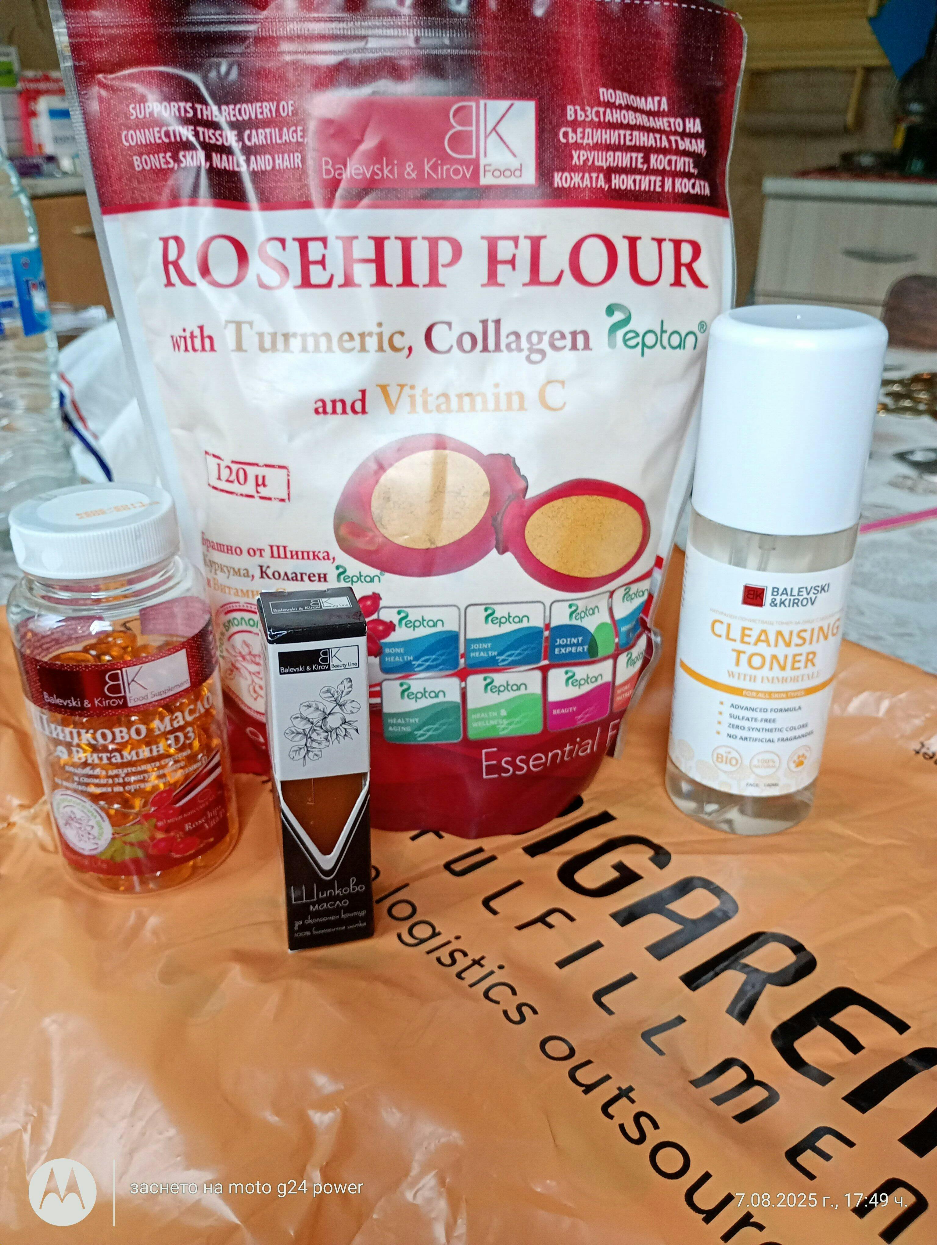 Брашно от изсушени шипкови плодове: Богато на витамини (особено витамин С), минерали, антиоксиданти и пектин. Натурален продукт без добавки и консерванти.