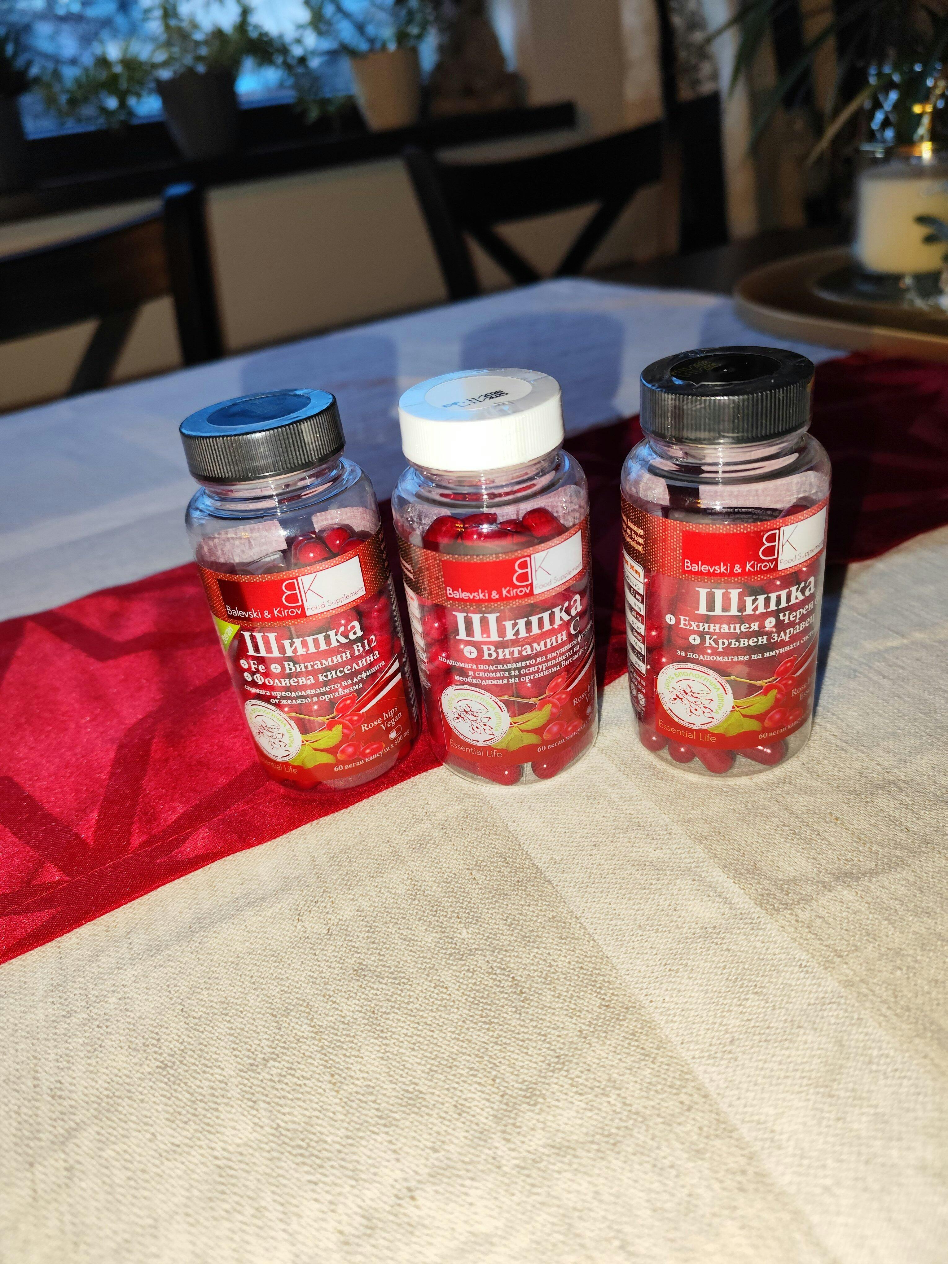 1)Rose hips Essentials - Шипка, Ехинацея, Черен бъз и Кръвен здравец