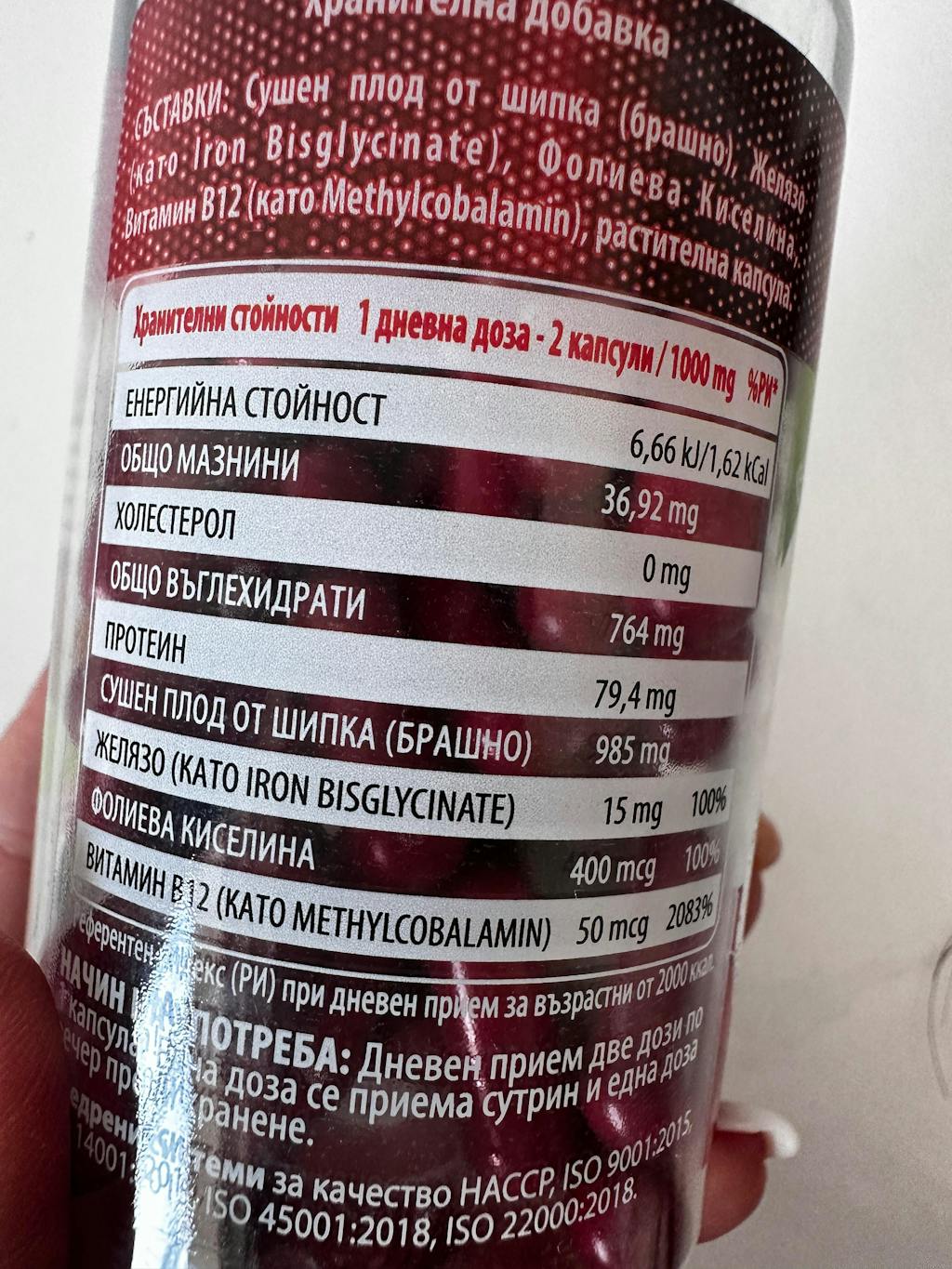 Растителна капсула, съдържаща сушен плод от шипка, желязо, фолиева киселина и витамин B12, създадена за преодоляване на дефицита от желязо и подпомагане на имунната система. Комбинацията от тези натурални съставки предоставя широк спектър от ползи за здравето.